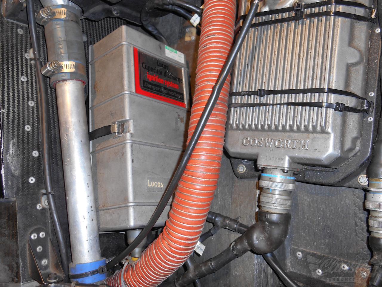 Moteur V8 Cosworth DFS 2650 cc turbocompressé : 720 chevaux (en course) et 850 chevaux en qualifications !