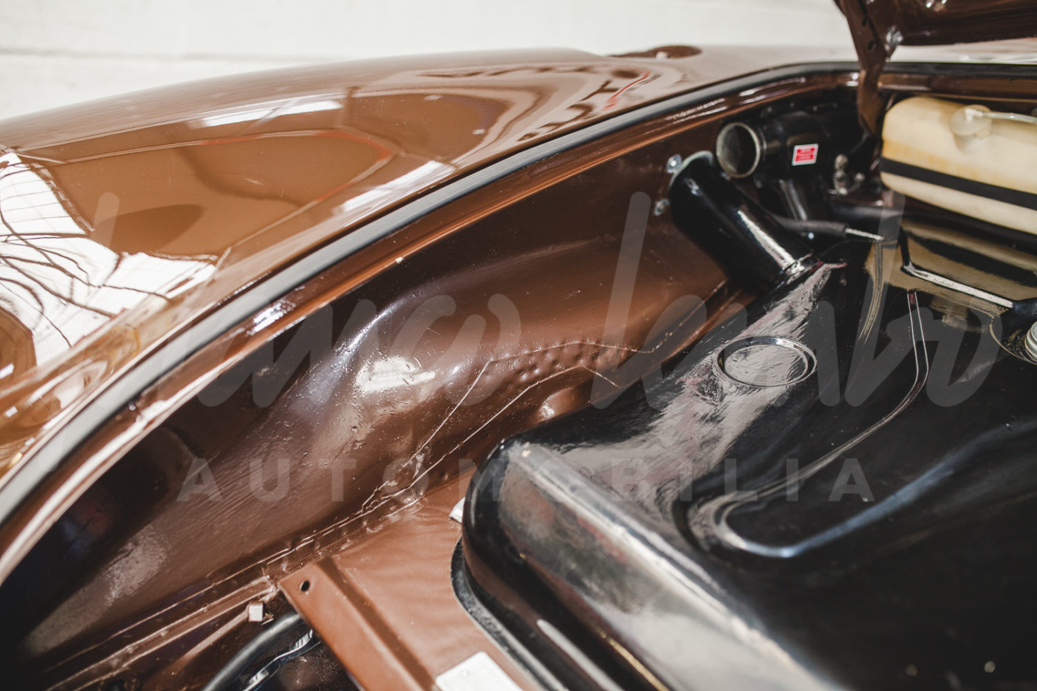 Notre 356 SC a été livrée dans une superbe couleur Togo brown 6411 d’origine (Très rare). Elle était aussi équipée en option d’un toit ouvrant électrique (non moins rare), comme l’atteste son certificat d’authenticité Porsche.